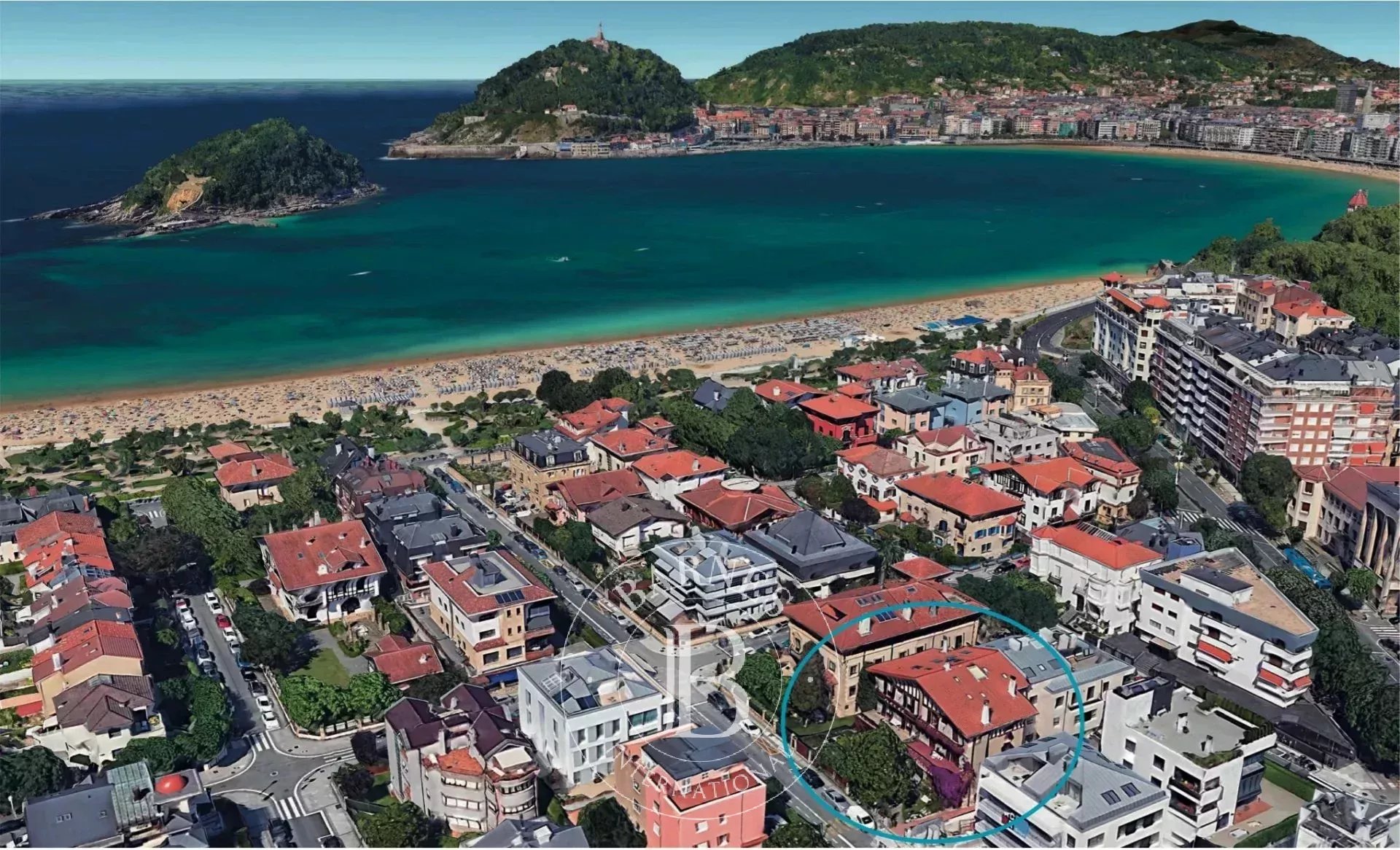 La ubicación es inmejorable, en un entorno residencial tranquilo y exclusivo, con la playa, los jardines de Ondarreta y el paseo de La Concha a pocos pasos, así como restaurantes, colegios y comercios de proximidad.
