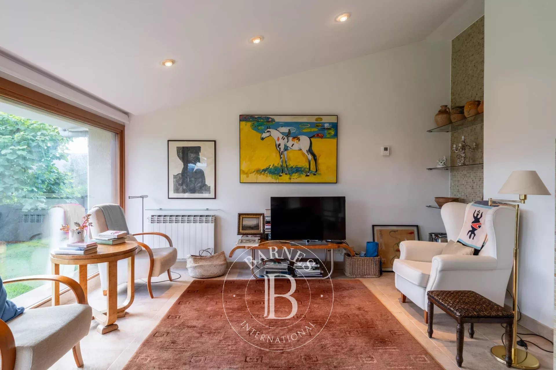 Avec une généreuse superficie de 170 m2, cette propriété dispose d’une cuisine fonctionnelle et conviviale, parfaite pour partager des moments culinaires. Le grand salon se distingue par ses larges baies vitrées, qui baignent l’espace de lumière naturelle et offrent une vue sur le magnifique jardin et les champs environnants. La cheminée ajoute une touche chaleureuse et accueillante, faisant de ce lieu l’endroit parfait pour se détendre et passer du temps en famille ou entre amis. La maison comprend également une bibliothèque — un coin idéal pour les amateurs de lecture — ainsi que 3 chambres confortables garantissant un repos optimal. La distribution comprend 2 salles de bain bien équipées, assurant le confort de toute la famille.