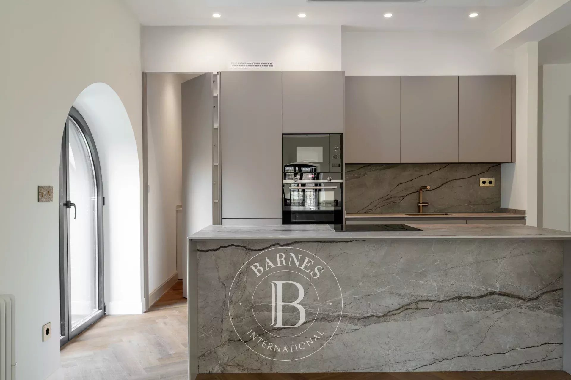 L’appartement a fait l’objet d’une rénovation intégrale de haut standing, avec une attention particulière portée à l’efficacité énergétique, aux menuiseries sur mesure, aux matériaux de première qualité et aux finitions contemporaines. Les hauts plafonds, les grandes fenêtres, les moulures d’origine et les balcons en fer forgé conservent le caractère de l’architecture Belle Époque propre au quartier romantique, tout en offrant le confort d’un logement moderne.