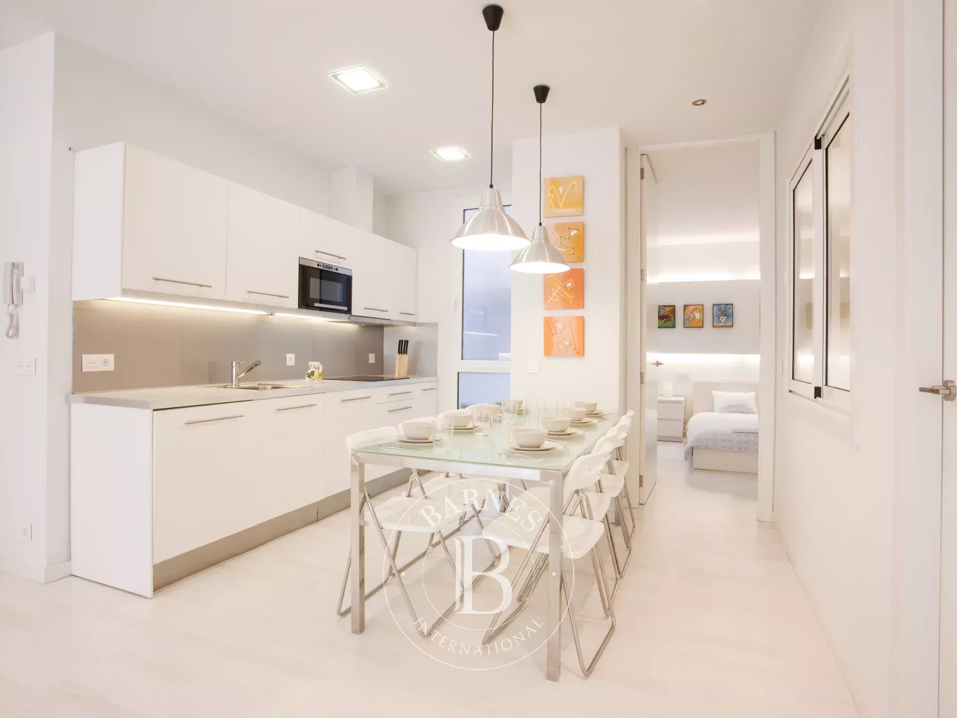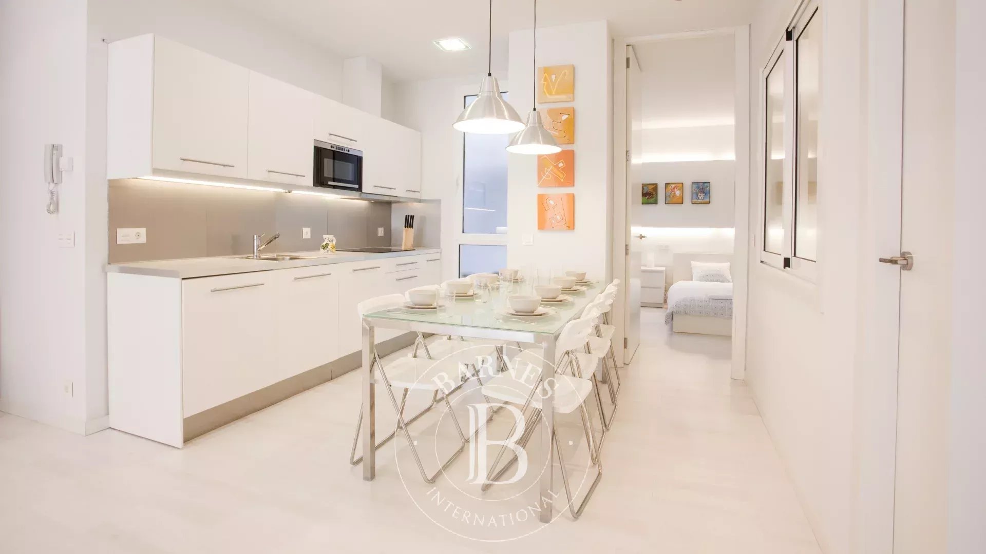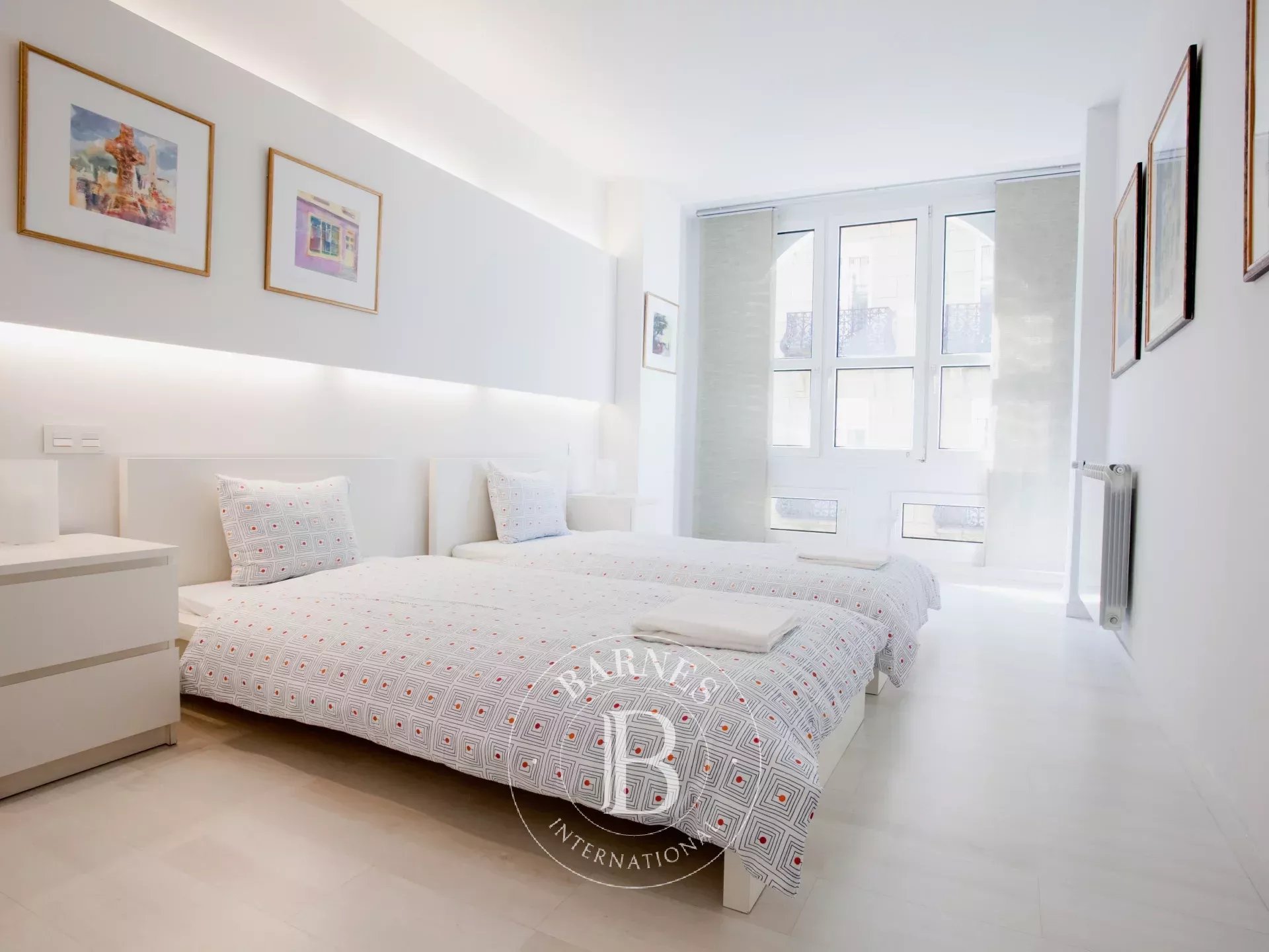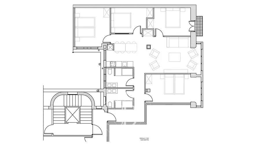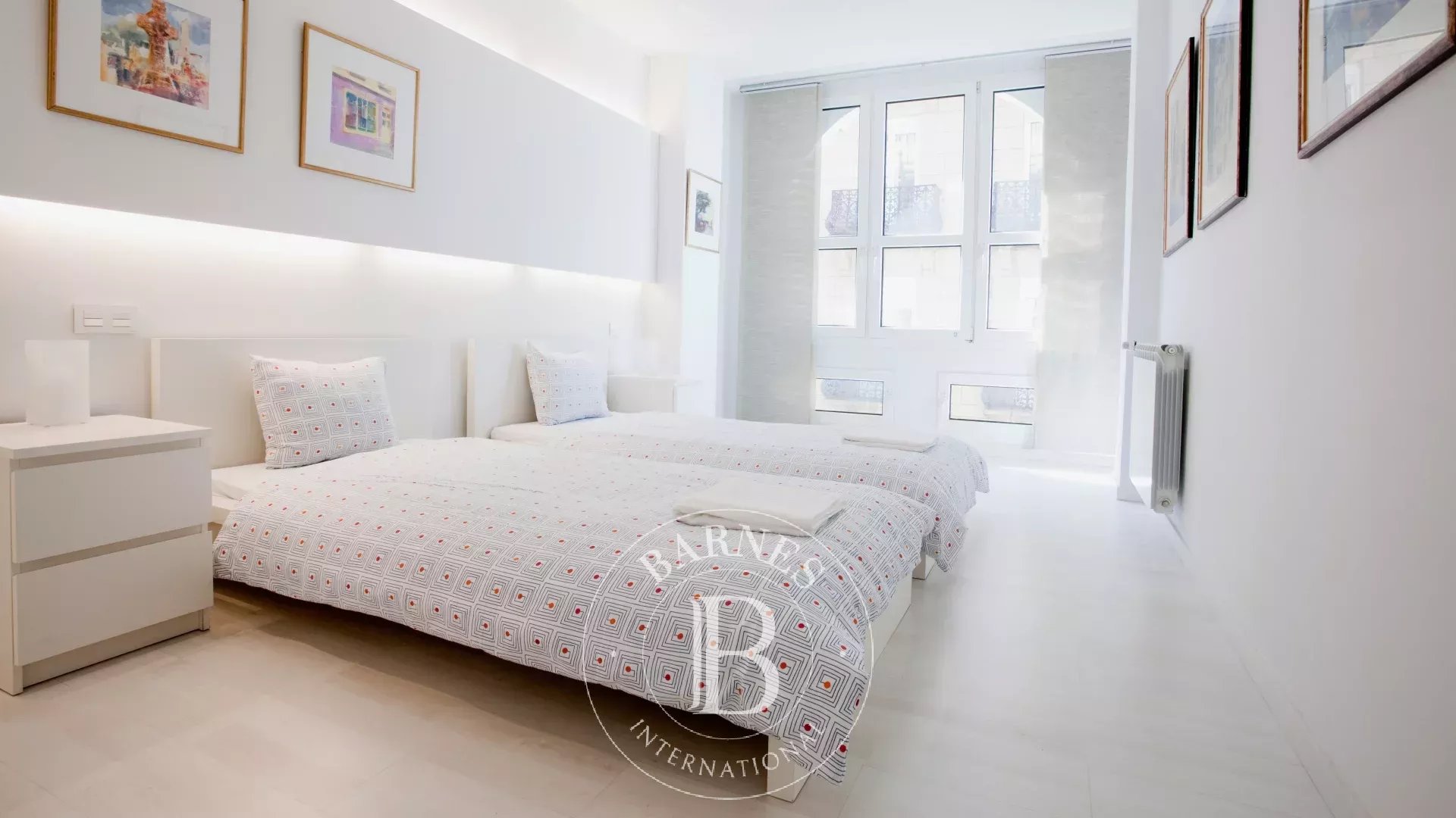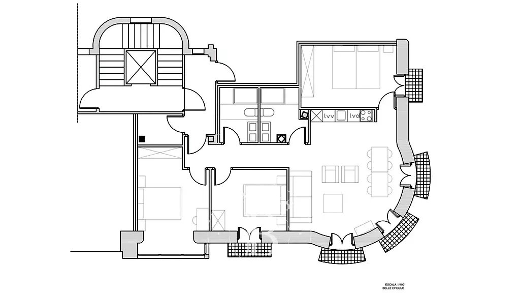 L’appartement se trouve au troisième étage d’un immeuble de caractère, en angle, et développe une surface d’environ 250 m². La distribution d’origine comprend sept chambres et quatre salles de bains, avec de beaux volumes et une structure permettant une redistribution aisée des espaces. Le bien est actuellement divisé en deux appartements indépendants, offrant une grande polyvalence d’usage : conserver la configuration actuelle, réunifier l’ensemble en une vaste résidence familiale ou développer un projet d’investissement.